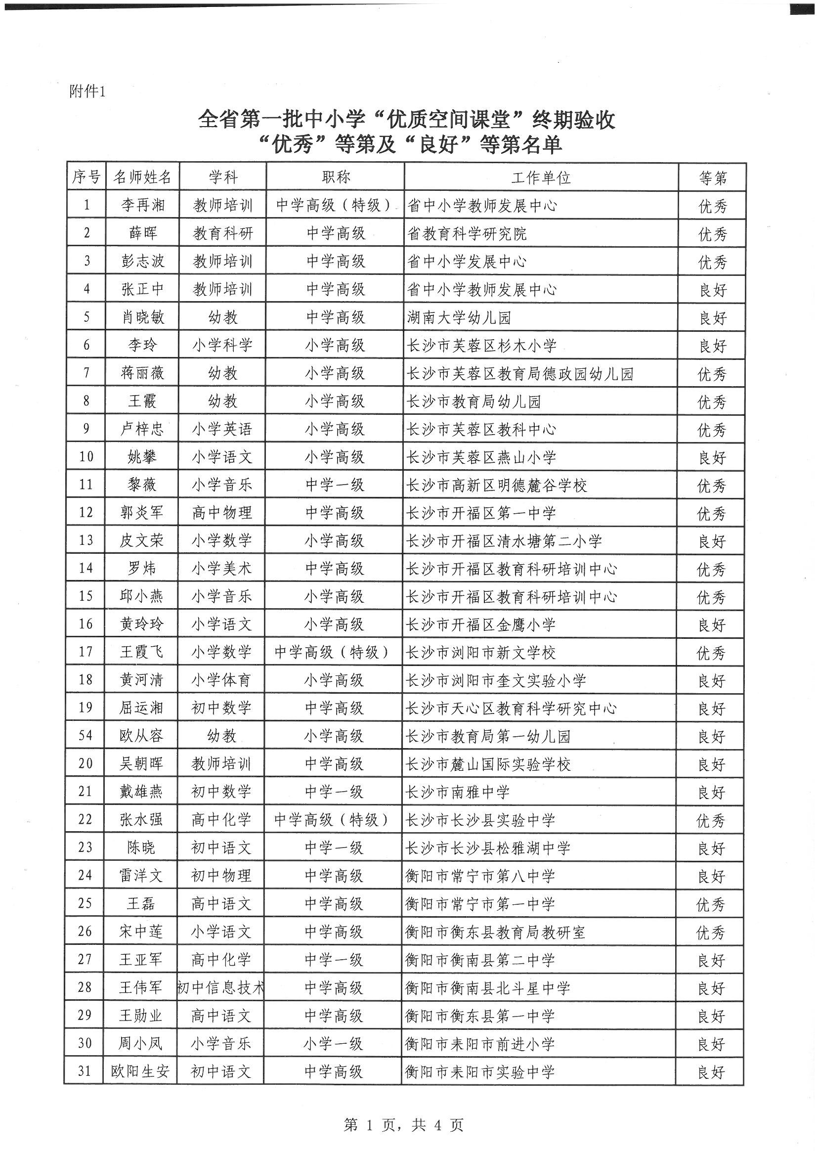关于全省第一批中小学“优质空间课堂”终期验收和第二批中小学“优质空间课堂”中期评估结果的通报