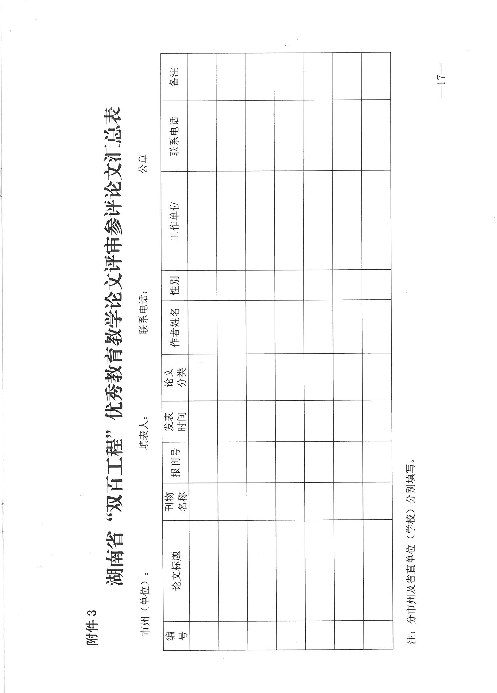 关于遴选湖南省中小学教师队伍建设“双百工程”2016年度优秀参评作品的通知