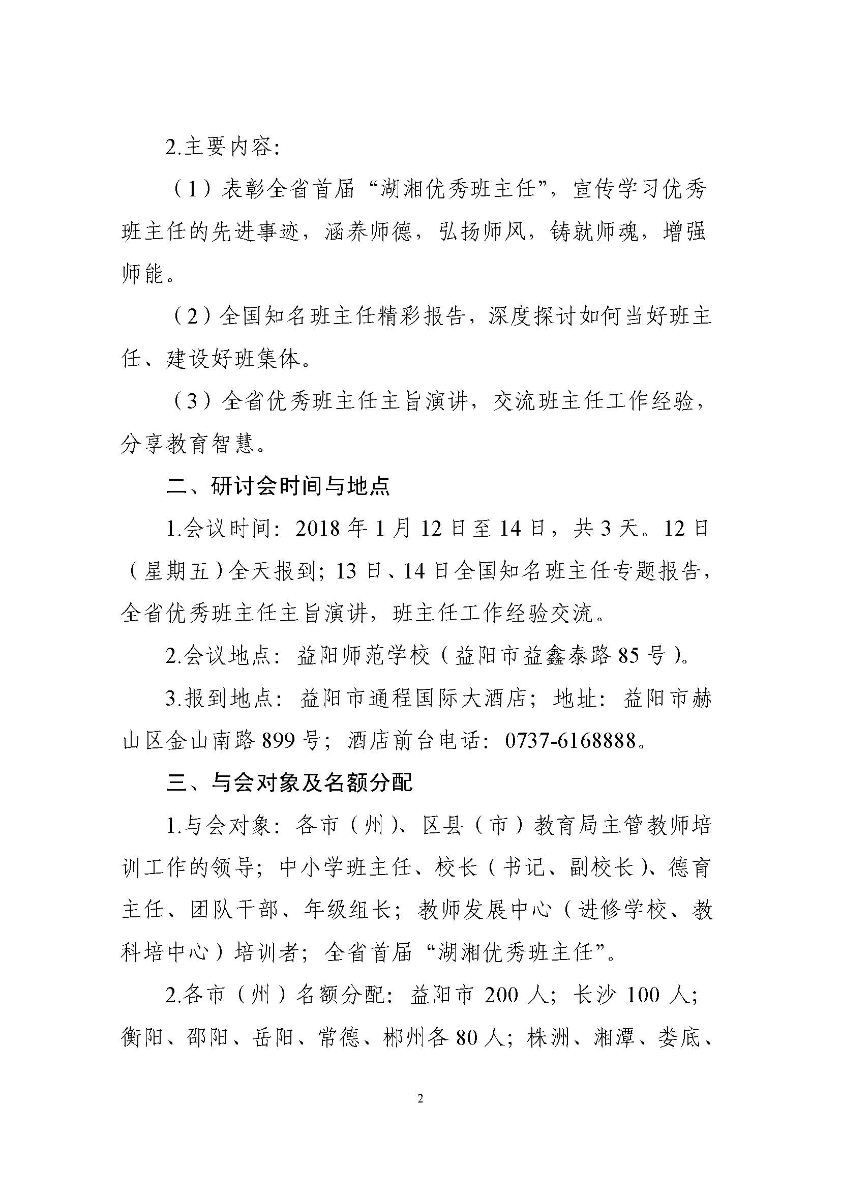 湖南省首届“湖湘优秀班主任”表彰大会暨第七届班主任工作研讨会通知