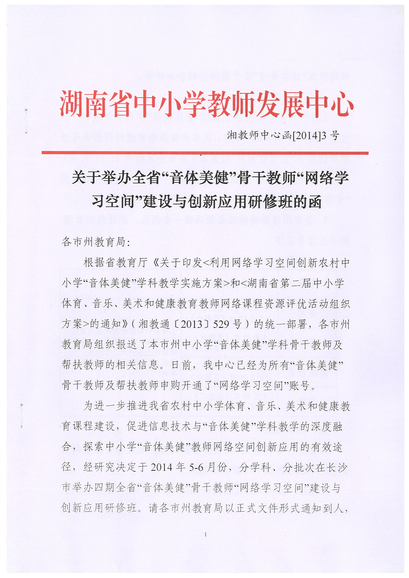 关于举办全省“音体美健”骨干教师“网络学习空间”建设与创新应用研修班的函